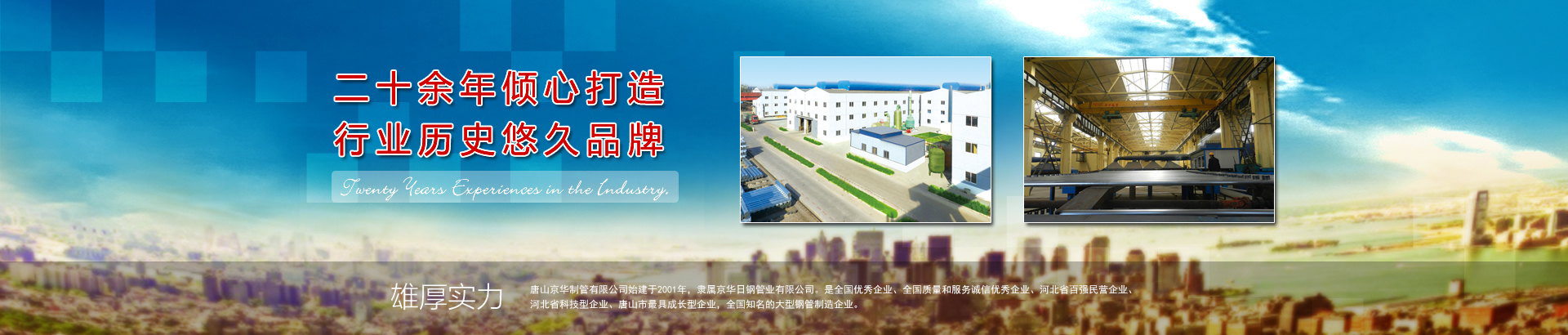 唐山京華制管有限公司始建于2001年,隸屬京華日鋼管業有限公司。位于河北唐山開平高新技術產業開發區,是國家高新技術企業、全國優秀企業、河北省科技型企業,全國知名大型焊接鋼管制造企業。